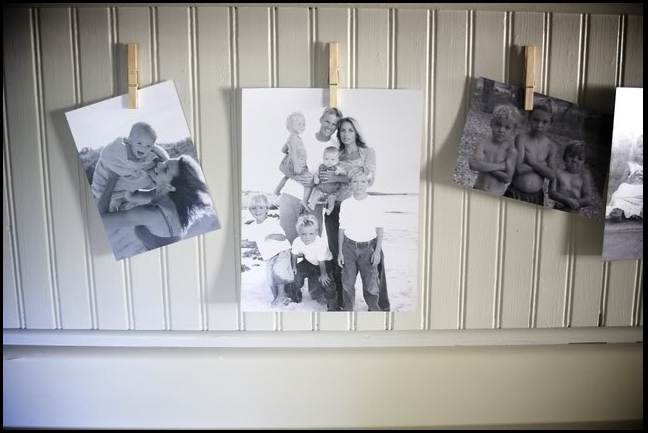 She is a fabulous photographer, among many other things, and nailed up five clothespins on the wall so she can switch out family photos often and with ease. Genius. Please enjoy this post on her $10 (no I am not a typo) kitchen redo here and her many other decorating-on-a-dime projects. You will be awe inspired by this woman.