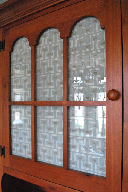I really really liked the lines of the hutch doors but they we’re getting lost with all the visual clutter behind them so we picked somewhat of a mod, updated fabric and lined the inside of them, in hopes the lines would shine brighter.